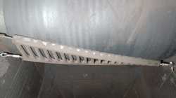 A salt plant in Ohio was looking to upgrade their skirtboard sealing systems. The existing slab rubber skirting was in bad repair and leaking material. With less than two inches (51 mm) of free belt area on each side of the loading zone, the conveyor had very limited amount of space available for installation of a sealing system.