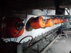 The operation uses underground conveyors suspended by cables from the mine ceiling. Keeping the belts running in the center of the suspended conveyors is a continuous challenge. Martin designed a special suspension bracket to allow installation on the suspended conveyors. Units are built with bronze bearings to avoid problems with static electricity in the underground coal mine.