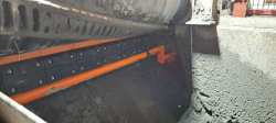 A 1400 mm wide belt conveyor which carries high-temperature clinker and limestone, was using skirtboard seals fabricated in-house from a variety of materials on hand, including high-strength steel belt carcass and strips of rubber. The system was experiencing serious dust and spillage issues, as well as belt damage from the non-standard sealing components.